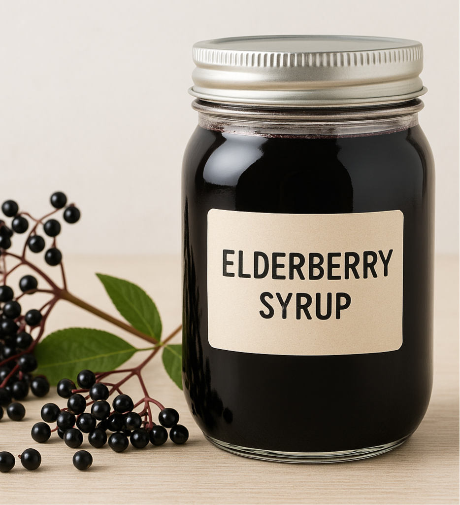 Our small-batch elderberry syrup is made with premium dried Sambucus nigra (European black elderberries), gently simmered with organic ginger, cinnamon, and clove, then lightly sweetened with natural agave. This time-tested herbal remedy supports immune health, helps reduce cold and flu symptoms, and delivers a rich dose of antioxidants in every spoonful.