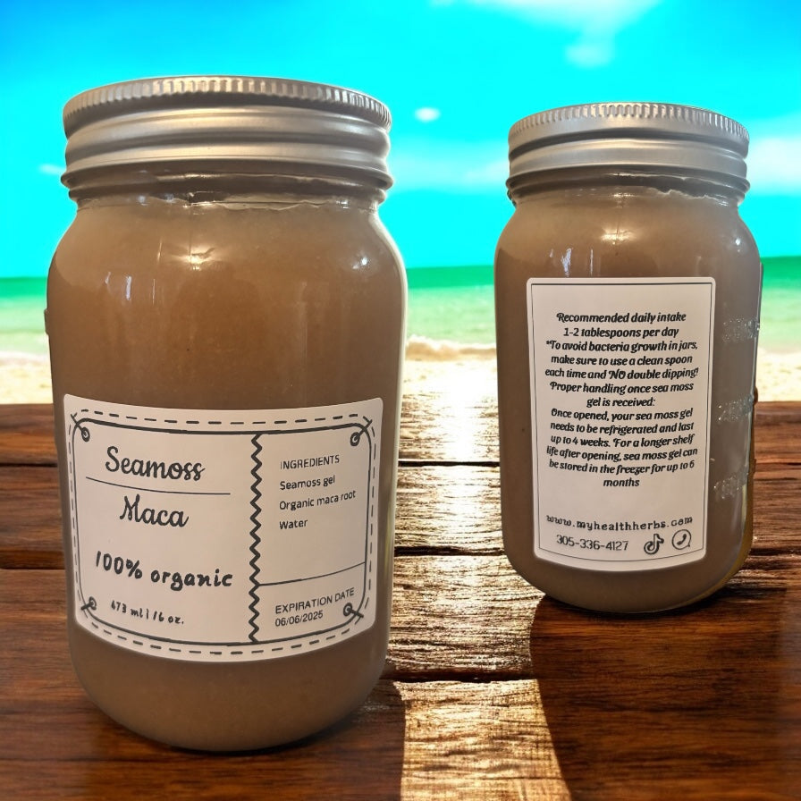 Sea moss gel combined with maca root creates a powerhouse blend of nutrients that offers numerous benefits for the body, both internally and externally. Here’s a detailed description: